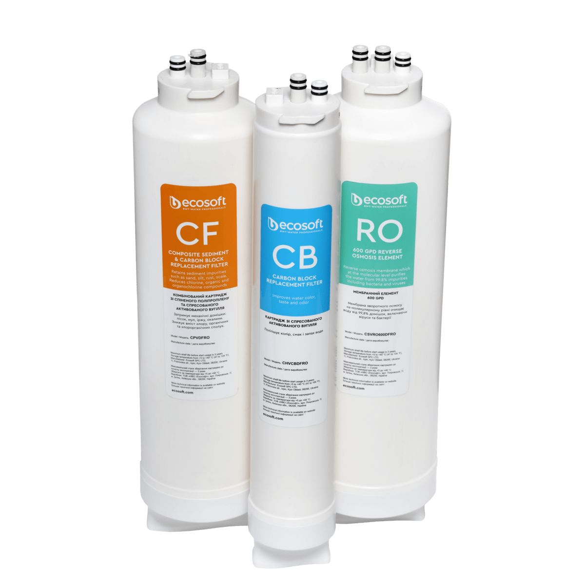 - „Ecosoft Carbon Block Postfilter“ atvirkštinio osmoso CROSS 60/90 pagerina išvalyto vandens skonį ir kvapą. Kasetė turi FAST&DRY pakeitimo technologiją, leidžiančią greitai ir švariai pakeisti neatjungiant vandens tiekimo. Tačiau rekomenduojame uždaryti vandens įleidimo angą pakeitimo proceso metu, kad būtų patogiau. II pakopa. Keičiamas kas 12 mėnesių.
