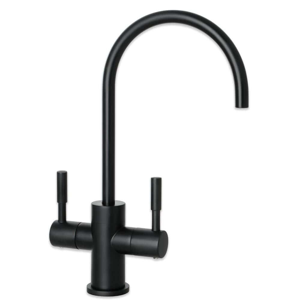 Dvigubas vandens filtro maišytuvas pasižymi elegantiška matine juoda apdaila ir yra pagamintas tik iš patvaraus 304 tipo nerūdijančiojo plieno.